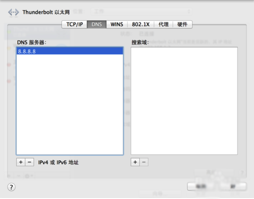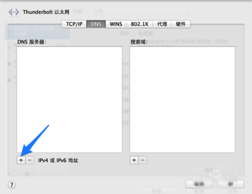 7、在 DNS 設置窗口中,請點擊左下方的“+”按鈕,添加一個 DNS 服務器地址,如圖所示