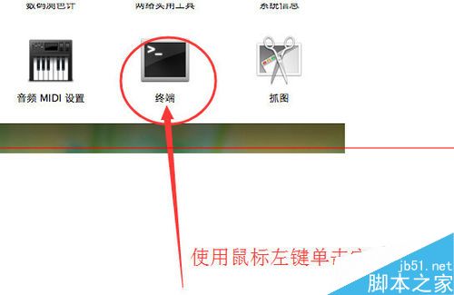 一般情況下,在【實用工具】中的工具列表里面的倒數第二個就是終端,可能你電腦里面該工具的位置與我的不一樣,但是都叫【終端】!