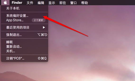 第一步、點擊蘋果圖標,菜單中選擇“系統偏好設置”