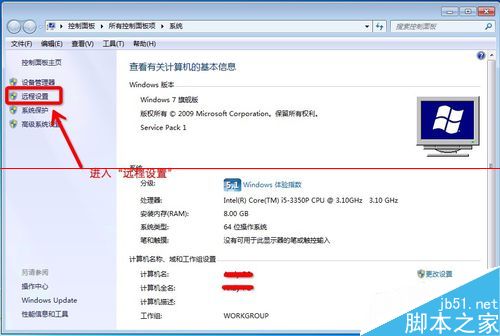 2、在左側(cè)列表中單擊“遠(yuǎn)程設(shè)置”進入遠(yuǎn)程設(shè)置。