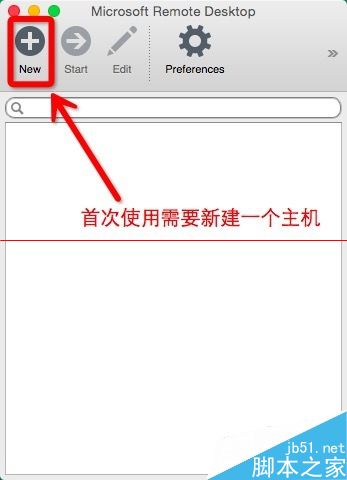 5、在打開的“Microsoft Remote Desktop”窗口中,單擊“New”圖標(biāo)按鈕,來創(chuàng)建一個新的遠(yuǎn)程主機。