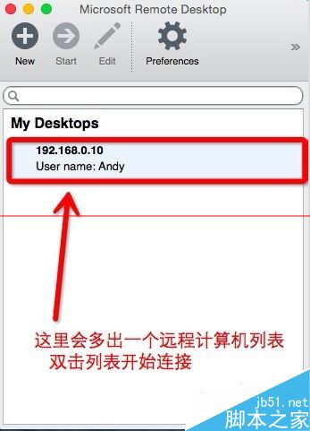 7、新建遠(yuǎn)程計算機后,在列表內(nèi)就會出現(xiàn)了,您只需要雙擊就可以連接了。