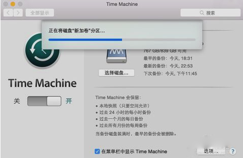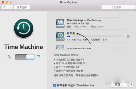 3、隨后請先確保此時 Time Machine 的開關已經打開,如圖所示
