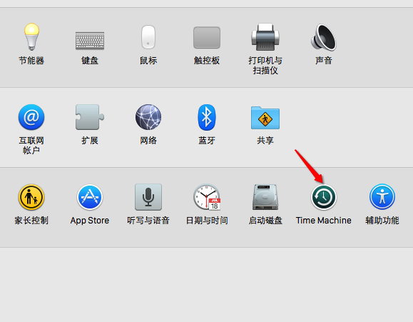 2、接下來我們在“系統偏好設置”中打開 Time Machine 的設置界面,如圖所示