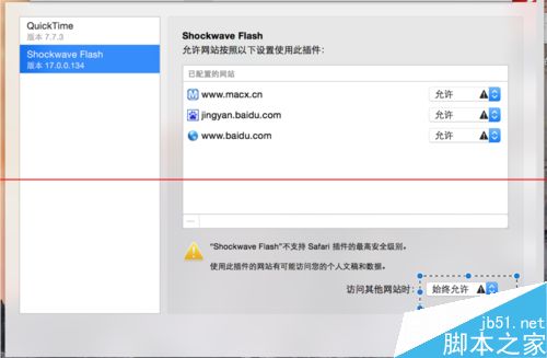 7、左邊選擇shockwave flash,右下角從請求修改為“總是允許”,基本完成