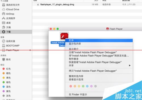 4、右鍵flash player安裝,按照提示知道安裝完成