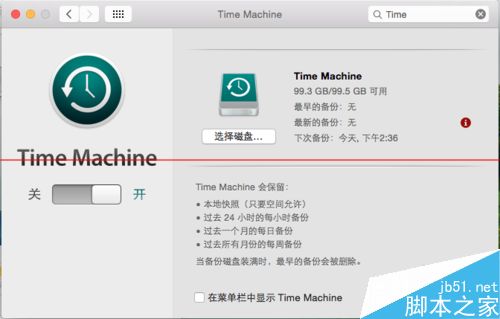 1、設置 Time Machine 數據備份Time Machine 支持通過 USB 或者 FireWire,Thunderbolt 連接到電腦的所有硬盤。 1,從菜單中點擊 Time Machine 圖標。 2,選擇 打開 Time Machine 偏好設置。 3,如果 Time Machine 顯示為關閉,滑動按鈕將其打開。 4,選擇您想要使用的磁盤進行備份。 5,Time Machine 將已選擇的磁盤作為備份目的地,并在兩分鐘內開始備份。