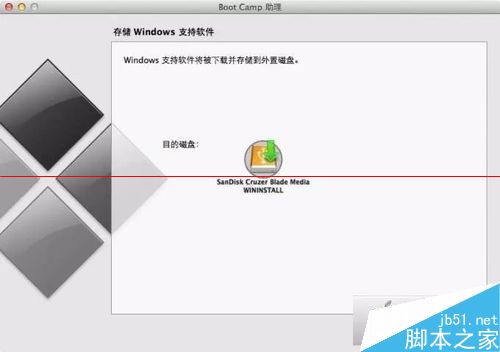 下載好的win10.iso復(fù)制到mac 桌面,啟動boot camp,制作windows安裝盤,并下載相關(guān)軟件。默認前兩個復(fù)選框選中,且無法更改。因為分區(qū)不是boot camp做的。