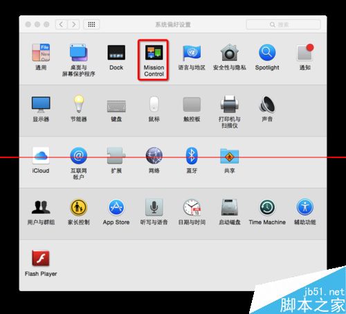 2、在“系統(tǒng)偏好設置”的第一欄點擊“Mission Control”。