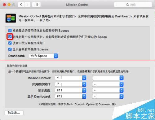 4、如果會出現(xiàn)Mission Control窗口沒有按應用程序成組的情況,那么如圖所示的“使窗口按應用程序成組”選項前的鉤子是未打上的。