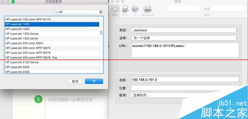 這個步驟肯定是對的,到hp官網下載并安裝了最新的驅動,os x驅動列表里也有,但選擇軟件中無對應的驅動軟件。我的mac os版本是10.10.2,也許版本太高還沒有對應的,也許...。