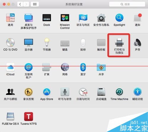 2、點擊mac os里的【系統設置偏好】,點擊【打印機與掃描儀】。