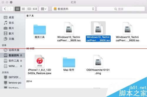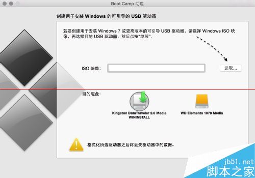 4、接著在這里可以看到我們當前插入到 Mac 的 U 盤,在 ISO 鏡像一欄,點擊“選取”按鈕,如圖所示
