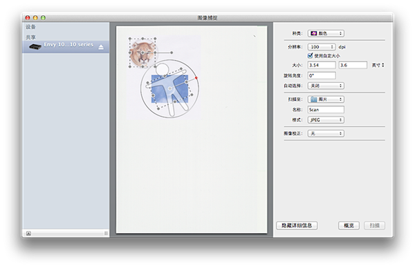 5、OS X Mountain Lion:默認情況下,圖像捕捉將掃描至系統默認的頁面大小(如美國信紙),并掃描整個頁面。點按其他選項,如“檢測上層框”或“檢測單獨項目”。