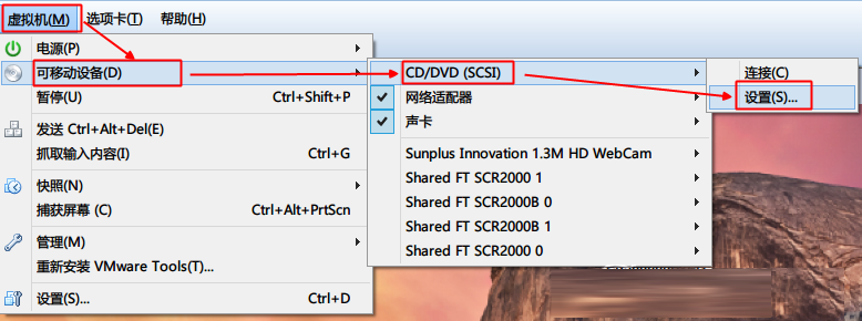 步驟類似,首先將CD彈出,設置為10.10的鏡像文件,然后連接CD即可,類似VMTool的安裝。直接點擊安裝或下一步即可。由于上傳大小限制,所以我將原來的鏡像文件切割成兩部分,下載下來后,直接解壓那個zip文件即可,然后就能得到iso文件了.