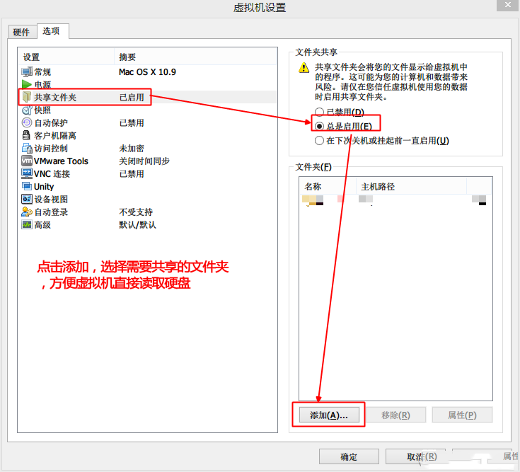 共享文件夾的說明:由于虛擬機無法訪問本機的硬盤,所以需要設置共享文件夾來方便虛擬機讀取電腦的物理內存。