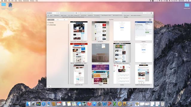 Yosemite還帶來了全新的Safari瀏覽器。在界面上,全新的Safari看起來和Yosemite相當協調,縮窄的標簽欄使頁面內容以更好的方式被呈現出來,而借鑒Spotlight的搜索預覽可以顯示摘要和縮略圖,Safari甚至還能根據iCloud賬戶中的信息優先推薦那些用戶經常瀏覽的網站。不僅如此,在被重新設計Top Sites頁面中,網頁預覽更長,與大部分網頁的垂直滾動布局相吻合,能夠呈現更多內容。用戶還可以根據需要把Top Sites替換為個人收藏。蘋果在發布會上著重提到了全新Safari中類似于Mission Control的抽屜式標簽頁設計,一個網站下的標簽頁可以被歸為一類,方便用戶進行多標簽頁瀏覽和管理。