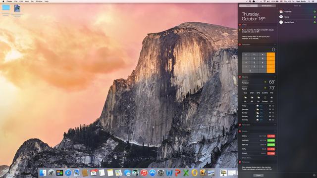 在Yosemite中,通知中心可以從桌面右邊推出,但是在實際體驗中,用到通知中心的機會其實并不多。首先,大部分通知并不重要,用戶往往會選擇忽略,即使需要處理也無需打開通知中心。其次,諸如短信、電話以及社交消息這類相對重要的通知,用戶一般都會在iPhone或者iPad上及時處理,畢竟Yosemite是桌面操作系統,而通知中心對于移動操作系統來說顯然更重要。不僅如此,天氣、股票、日歷等小插件也并不實用,大部分情況下用戶更偏向于使用完整的應用程序,而唯一有用的計算器通過Spotlight來呼出其實更簡單。雖然Yosemite的通知中心顯得有些多余,但是如果開發者能推出第三方插件的話,相信通知中心的尷尬現狀會有所改變。
