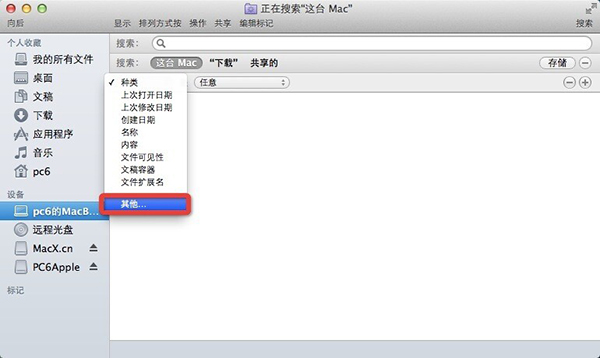 第一步:打開Finder管理器,使用 Command+F 組合鍵,打開Finder管理器的搜索功能,界面如下圖所示。