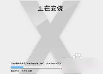 4.點按“安裝”。Mac OS X 安裝期間,屏幕底部會顯示一個狀態欄。