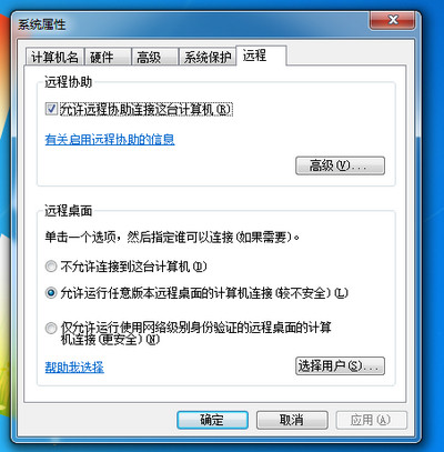 2、在打開的“系統屬性”窗口里點擊“遠程設置”,彈出對話框如下圖。