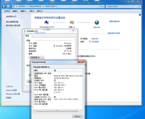方法二,雙擊圖標“網絡”,或者點擊右下角的網絡連接圖標都可以打開網絡共享中心。打開本地連接,然后查看詳細信息里面會有IPV4的地址,就是我們所需要的IP地址,例如小編的地址是:192.168.1.5。
