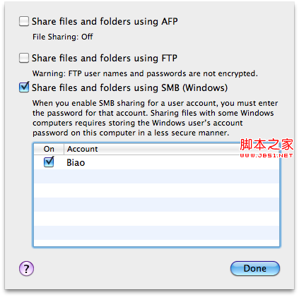 2. 點擊Options...,在出現的容器里選中 using SMB共享方式