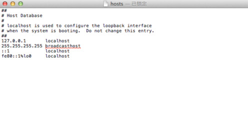 第四步、雙擊打開“Hosts”文件,內容如下,你會發現其實Mac OS系統的Hosts文件和Windows系統的Hosts文件其實一個樣,按照你的需求修改就可以了。