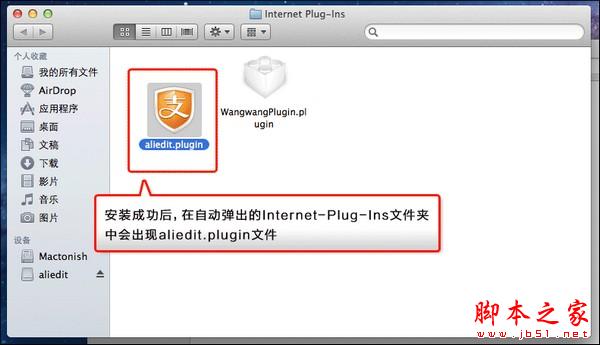 8、安裝成功后,在自動彈出的Internet-Plug-Ins文件夾中會出現aliedit.plugin文件;