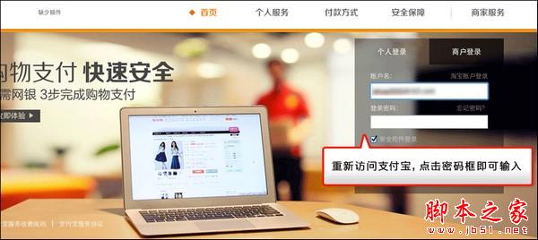 9、重新訪問支付寶,點擊密碼框即可輸入。