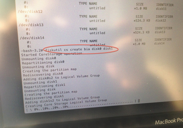 這里我們在網絡上手機和整理了一些關于Fusion Drive 使用教程,提醒大家這種格式不能用作分區安裝windows(bootcamp)。