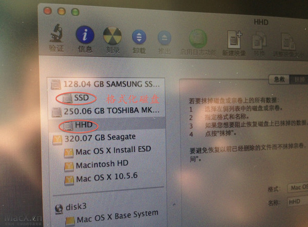 3、進入磁盤工具把2塊硬盤都進行格式化
