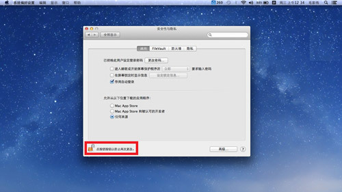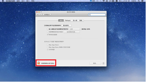 1、執行"蘋果"菜單下的"系統偏好設置"命令,或者在Dock任務欄中點按"系統偏好設置"圖標,打開"系統偏好設置窗口",選擇"安全性與隱私"。