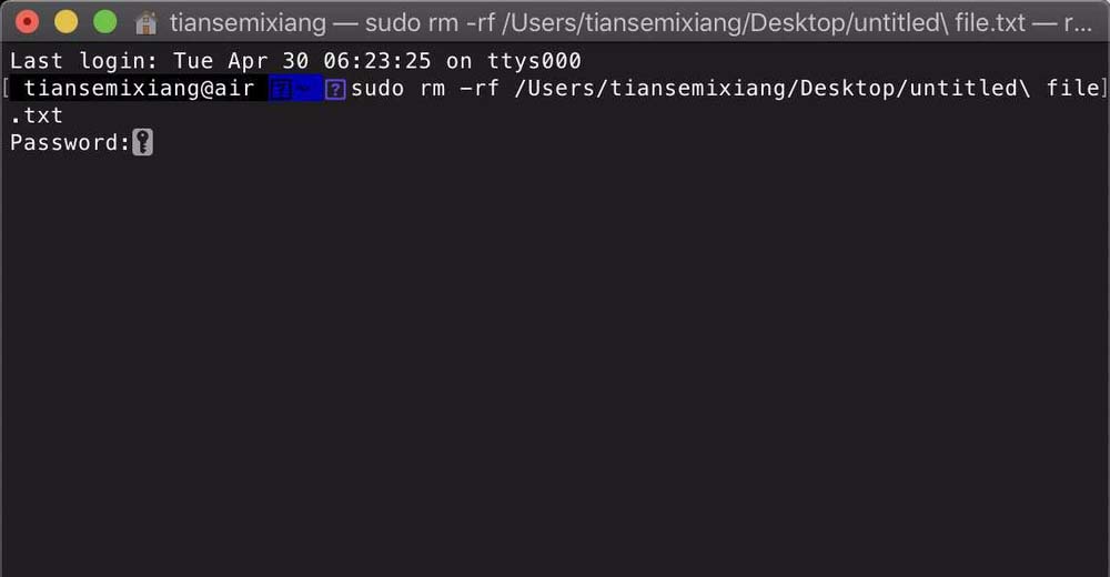 5、把桌面無法刪除的文件拖入終端,輸入管理員密碼即可刪除。