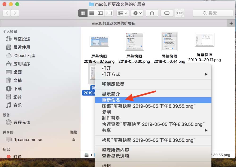 7、也可以選擇文件,然后右鍵彈出的列表框中,選擇“重新命名”來更改文件的擴展名