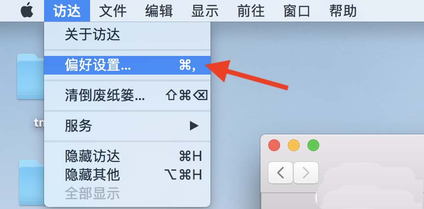 2、打開菜單欄上的“訪達”,然后點擊偏好設置