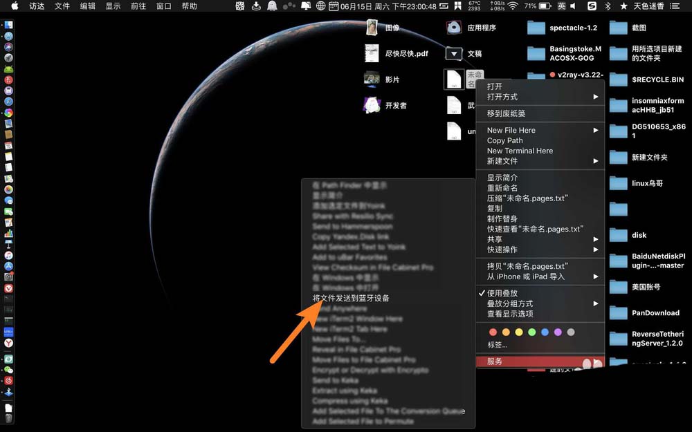 2、之后點擊改名文件右鍵服務,選將文件通過藍牙發送。
