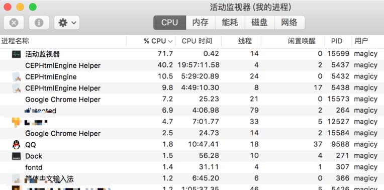 4、打開(kāi)活動(dòng)監(jiān)視器界面,在列表中點(diǎn)擊要關(guān)閉退出的軟件。