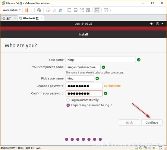 9)在“Who are you”配置界面。主要是讓用戶指定虛擬機系統的用戶名、機器名稱及密碼,此處根據自己喜好進行輸入即可;