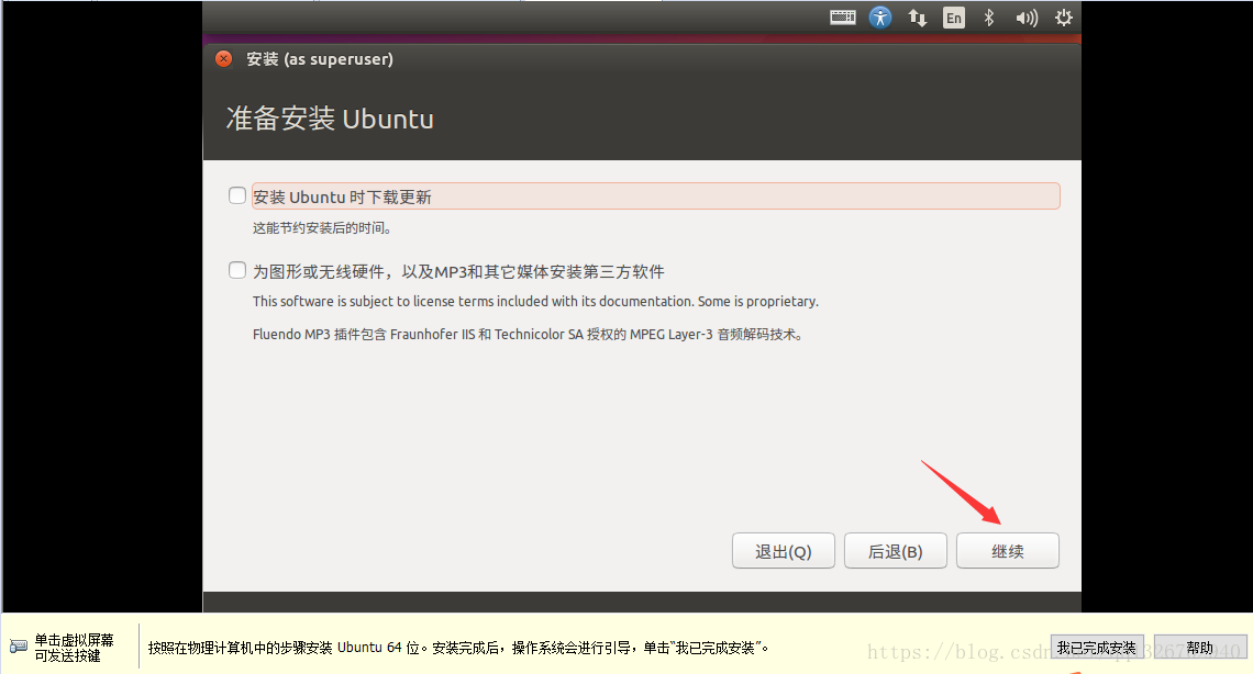 2.26)虛擬機 安裝 完Ubuntu ,需要重啟,先 點擊 虛擬機下面 我已完成安裝