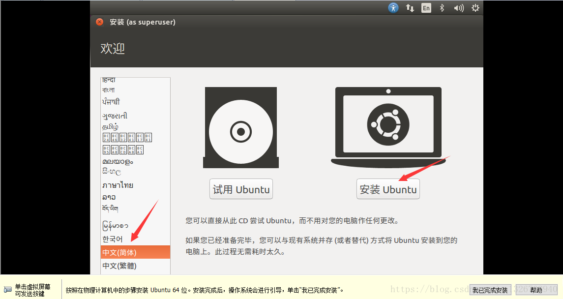 2.18)開始安裝 Ubuntu ,語言選擇 中文(簡體), 然后 點擊 安裝Ubuntu