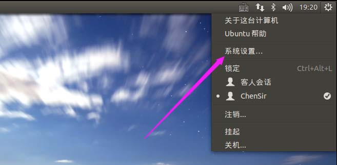 1、啟動Ubuntu之后,我們點擊屏幕右上角的設置按鈕,如圖示。