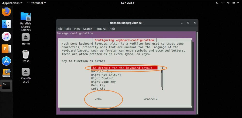 5、再選擇一個(gè)按鍵組合起來以便激活它的【altgr】功能,選no,則不用組合鍵,然后選yes,那么即可把鍵盤布局設(shè)置為English(us),就是美式鍵盤。