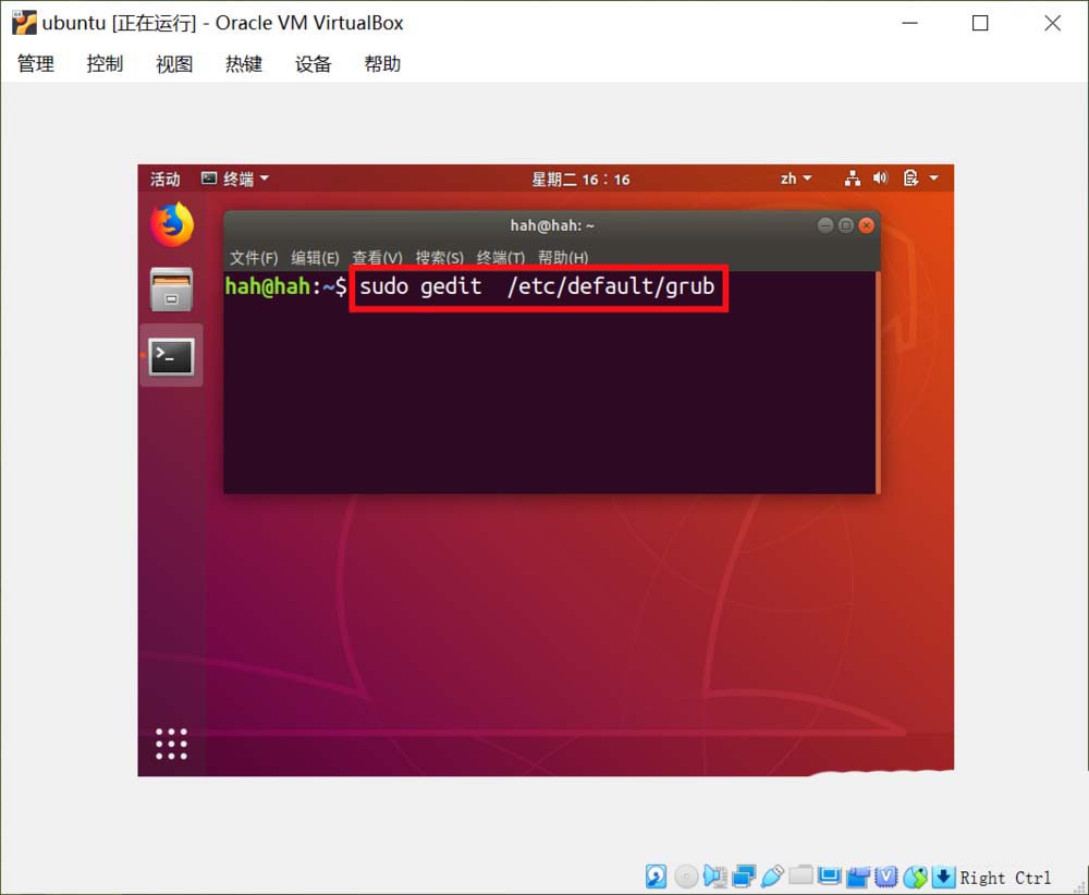3、在終端輸入sudo gedit /etc/default/grub 打開配置文件。