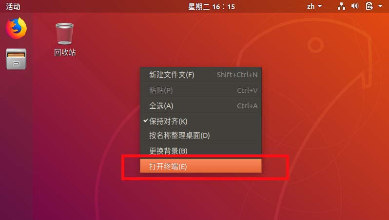2、在桌面上右鍵--打開終端。