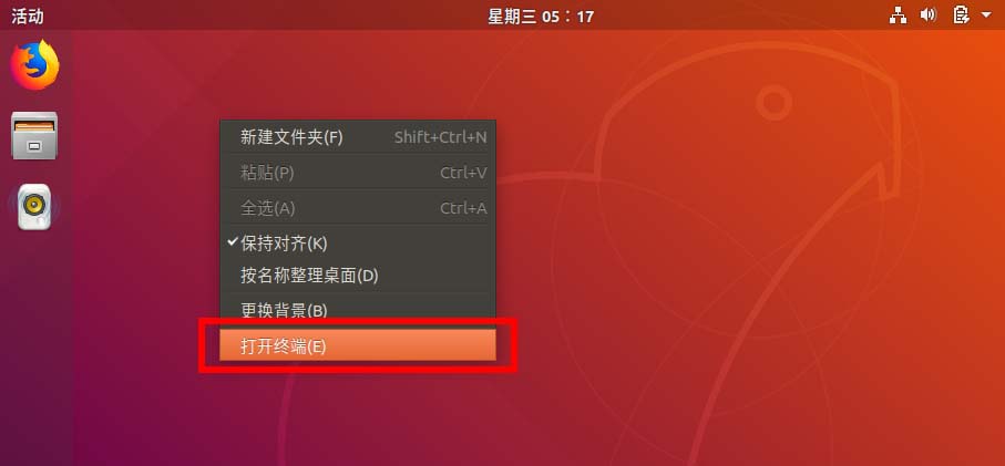 2、在桌面上右鍵 打開終端。