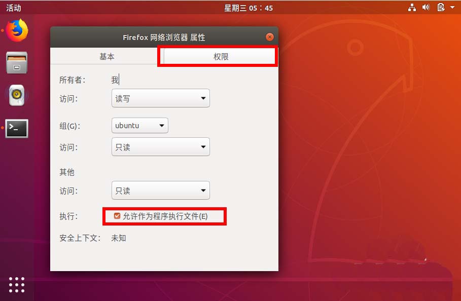 7、頂部切換到權限,勾選底部的 允許作為程序執行文件。