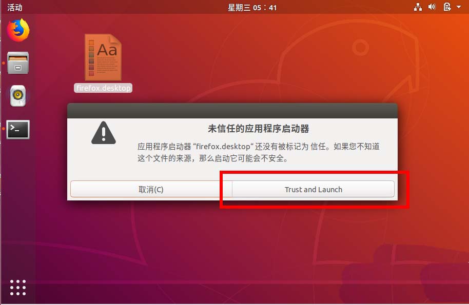 8、然后可以雙擊打開這個文件,彈出窗口的話選擇Trust and Launch,然后我們發現文件就變成圖標了。