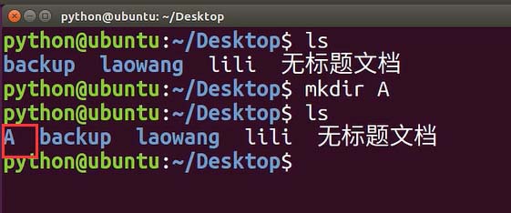 2、然后我們運(yùn)用mkdir創(chuàng)建一個(gè)A文件夾,如下圖所示,直接在mkdir命令后面添加文件夾名字即可