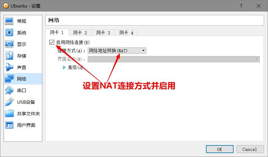 網絡-網卡1 > 啟用網絡連接 > 選擇NAT連接方式 > 即可完成基本配置